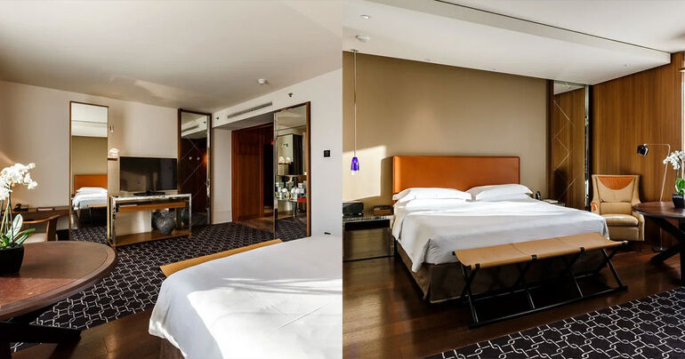 Пространство здесь организовано иначе: появляются отдельные зоны для сна, отдыха, работы и приёма пищи, а интерьер больше напоминает современную квартиру, чем типичный гостиничный номер.