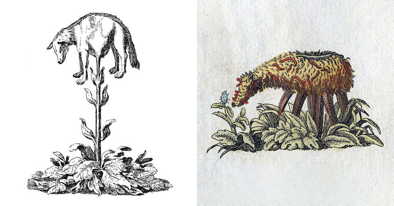 В 16 веке европейские путешественники, побывавшие в России, описывали загадочное растение, называемое баранец или скифский агнец. По их описаниям, оно имело форму ягненка с головой, глазами, ушами и копытами, при этом было соединено с землей корнем, похожим на пуповину, и будто питалось травой вокруг себя. Растение покрывал мягкий «мех», который использовали для утепления шапок. Якобы агнец жил до тех пор, пока вокруг него оставалась трава, а затем увядал.