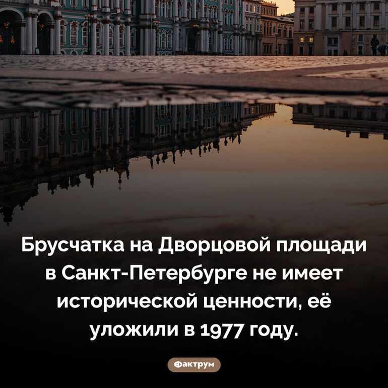 Брусчатка на Дворцовой площади в Санкт-Петербурге не имеет исторической ценности, её уложили в 1977 году.
