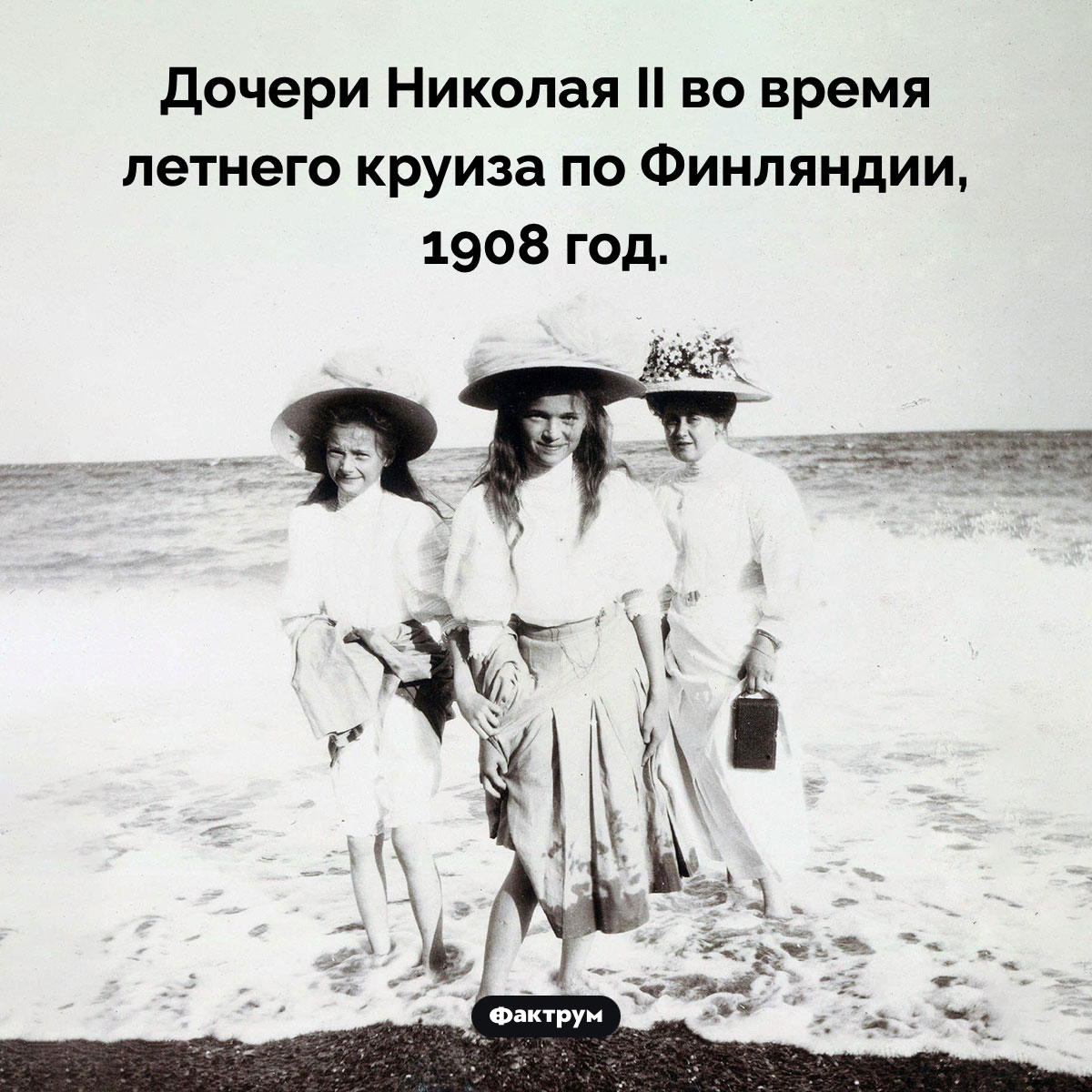 Дочери Николая II во время летнего круиза по Финляндии, 1908 год.