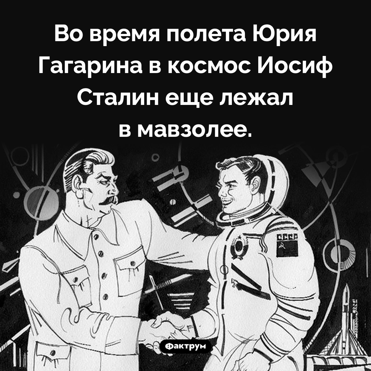 Во время полета Юрия Гагарина в космос Иосиф Сталин еще лежал в мавзолее.