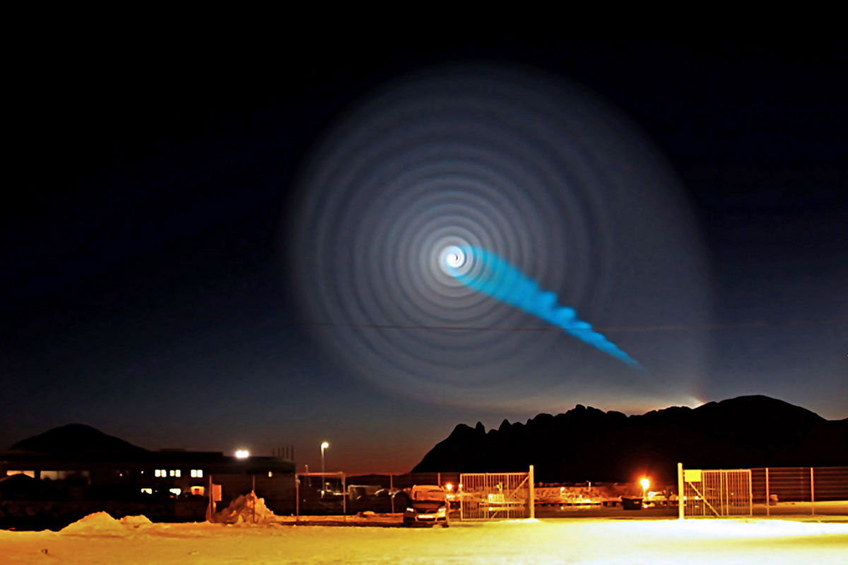 В декабре 2009 года жители северной Норвегии стали свидетелями странного зрелища: в небе появилась гигантская светящаяся спираль, которая медленно раскручивалась и превращалась в сияющее «гало». Явление длилось всего несколько минут, но вызвало настоящий ажиотаж — от звонков в метеослужбы до теорий о НЛО и «конце света».