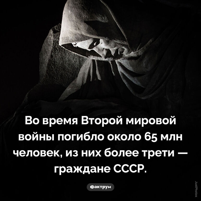 Во время Второй мировой войны погибло около 65 млн человек, из них более трети — граждане СССР.