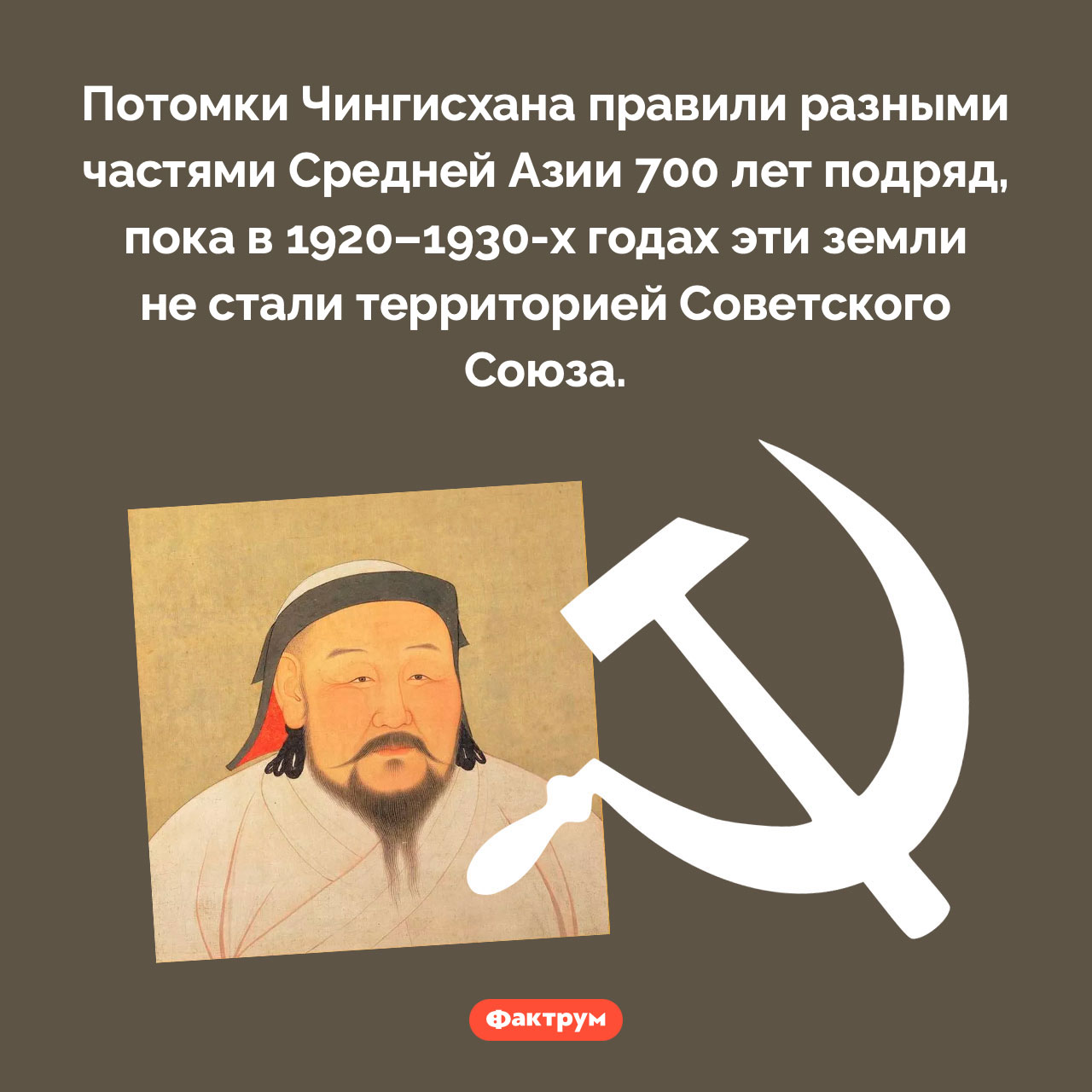 Потомки Чингисхана правили разными частями Средней Азии 700 лет подряд, пока в 1920–1930-х годах эти земли не стали территорией Советского Союза.